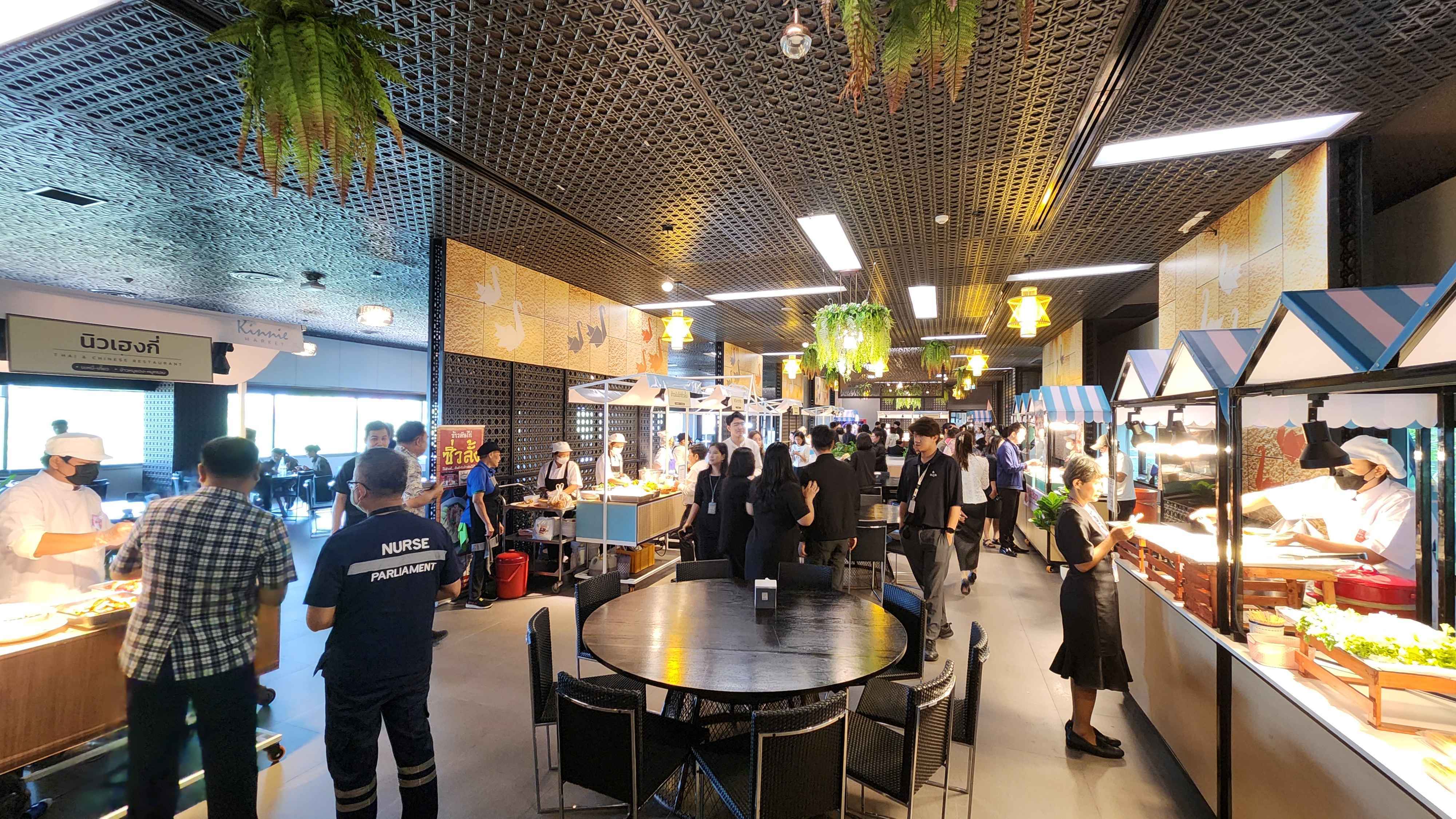 จากนั้น นายโสภณ ได้พาเยี่ยมชมศูนย์อาหาร ของ สส. บริเวณชั้น 2 โดยมีร้านอาหาร ผลไม้ เครื่องดื่ม จำหน่ายอย่างหลากหลาย ซึ่งต้องแลกเป็นคูปองชำระแทนเงิน