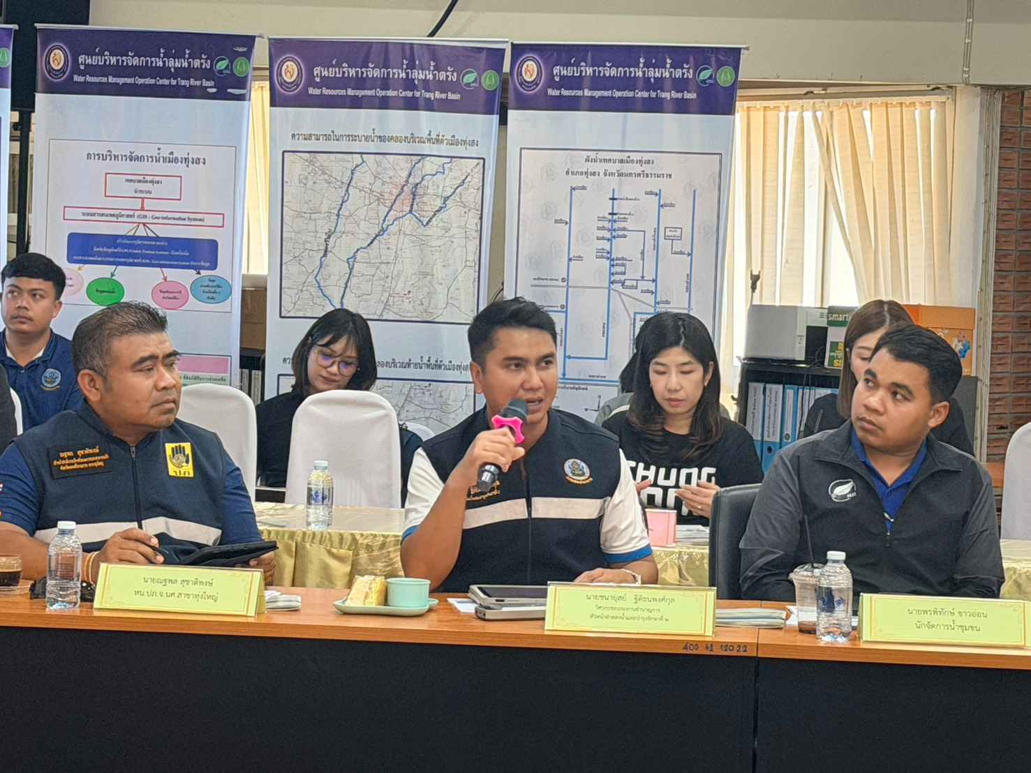 นายธวัช สุระบาล ประธานคณะกรรมาธิการ (กมธ.) การเกษตรและสหกรณ์ วุฒิสภา พร้อมกรรมาธิการ ลงพื้นที่ศึกษาดูงานการบริหารจัดการน้ำเพื่อแก้ไขปัญหาภัยแล้ง ณ ศูนย์บริหารจัดการน้ำลุ่มน้ำตรังเทศบาลเมืองทุ่งสง อำเภอทุ่งสง จังหวัดนครศรีธรรมราช ในการนี้ จ.อ. เวชยันต์ หนูรักษา ปลัดเทศบาลเมืองทุ่งสง รักษาราชการนายกเทศมนตรีเมืองทุ่งสง กล่าวต้อนรับ นายสมพงษ์ วงศ์แก้ว ที่ปรึกษาศูนย์บริหารจัดการน้ำลุ่มน้ำตรัง เทศบาลเมืองทุ่งสง ได้ให้ข้อมูลเกี่ยวกับจังหวัดนครศรีธรรมราชมีลักษณะภูมิประเทศตั้งอยู่บริเวณเชิงเขาของเทือกเขาหลวง ทำให้เผชิญอุทกภัยซ้ำซากทุกปีและมีแนวโน้มรุนแรงขึ้น ส่งผลกระทบต่อคุณภาพชีวิตและทรัพย์สินของประชาชนในวงกว้าง เทศบาลเมืองทุ่งสงจึงจัดตั้งศูนย์บริหารจัดการน้ำลุ่มน้ำตรังเมื่อวันที่ 3 สิงหาคม 2562 โดยบูรณาการความร่วมมือกับภาครัฐ เอกชน ท้องถิ่น และสถาบันการศึกษา พร้อมเข้าร่วมเครือข่ายกับสถาบันสารสนเทศทรัพยากรน้ำ (องค์การมหาชน) และมูลนิธิอาสาเพื่อนพึ่ง (ภาฯ) ยามยาก สภากาชาดไทย ครอบคลุมพื้นที่ลุ่มน้ำสาขาแม่น้ำตรังใน 2 จังหวัด คือ นครศรีธรรมราชและตรัง