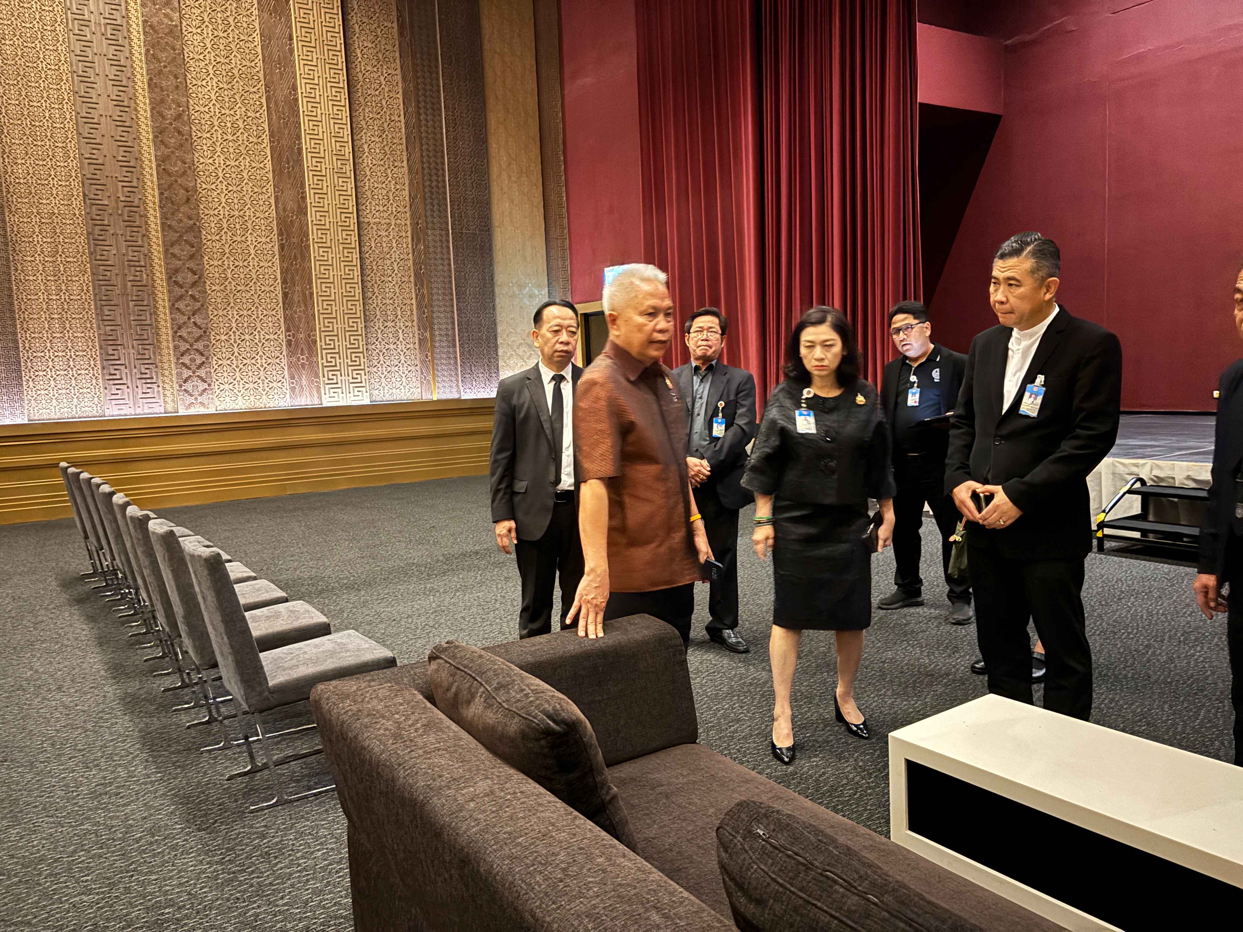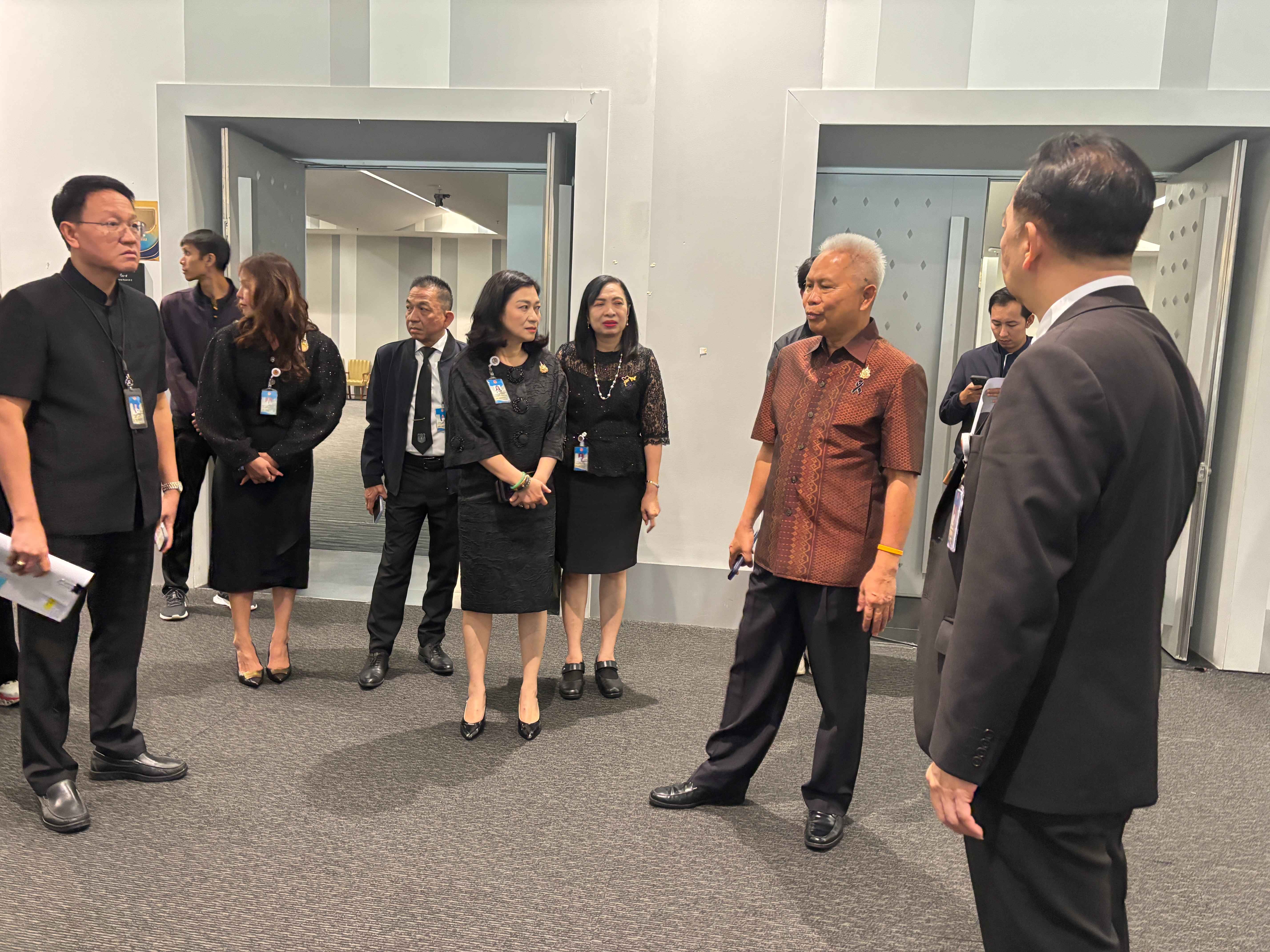 นายโสภณ ซารัมย์ ประธานสภาผู้แทนราษฎร นำคณะผู้บริหารสำนักงานเลขาธิการสภาผู้แทนราษฎร ลงพื้นที่ตรวจความพร้อมการจัดสัมมนาโครงการสภาผู้แทนราษฎรพบประชาชน กิจกรรมส่งเสริมบทบาทสภาผู้แทนราษฎรในการแก้ไขปัญหายาเสพติดแบบบูรณาการ ในวันที่ 27 เมษายน 2569 ณ ห้องจัดเลี้ยง B2-1 ชั้น B2 และห้องสัมมนาชั้น B1 อาคารรัฐสภา โดยได้ตรวจความพร้อมในด้านสถานที่จัดงาน ระบบเสียง และอุปกรณ์การประชุมสัมมนา รวมถึงการจัดผังพื้นที่รองรับผู้เข้าร่วมงาน การอำนวยความสะดวก และมาตรการรักษาความปลอดภัย เพื่อให้การจัดงานเป็นไปอย่างเรียบร้อยและมีประสิทธิภาพ นอกจากนี้ ยังได้ติดตามความพร้อมด้านเนื้อหาและการประสานงานกับหน่วยงานที่เกี่ยวข้อง ทั้งวิทยากรและผู้เข้าร่วมจากภาคส่วนต่าง ๆ เพื่อให้การแลกเปลี่ยนความคิดเห็นและการจัดกิจกรรมเชิงปฏิบัติการเกิดประโยชน์สูงสุด