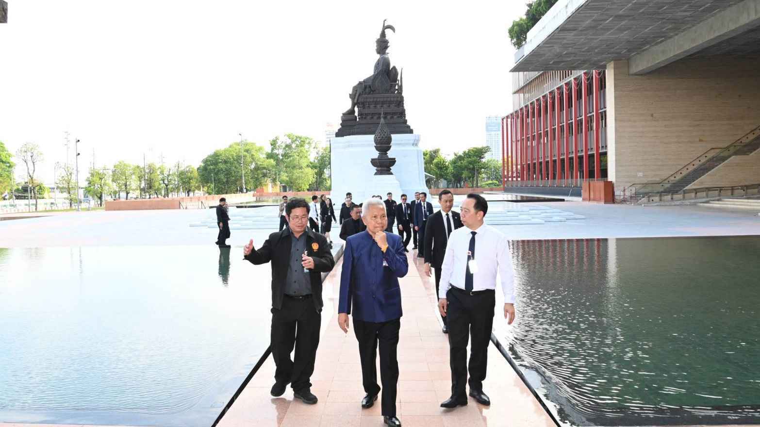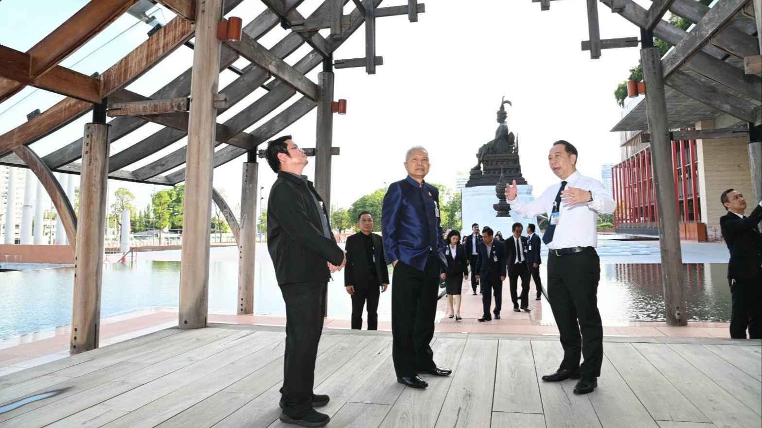 จากนั้น ได้เข้าตรวจสอบแท่นประดิษฐานพระบรมราชานุสาวรีย์ รัชกาลที่ 7 (องค์ใหม่) และงานสถาปัตยกรรมตามคติไตรภูมิ ซึ่งปัจจุบันยังไม่พร้อมใช้งาน โดยมีดำริให้ฝ่ายอาคารสถานที่เร่งจัดทำแผนงานและจัดหาผู้รับจ้างตามระเบียบราชการอีกครั้ง หลังจากการประกวดราคาอิเล็กทรอนิกส์ (e-bidding) ครั้งก่อนมีผู้เสนอราคาเพียงรายเดียว จึงไม่สามารถดำเนินการได้ โดยได้กำชับให้ตรวจสอบกรอบระยะเวลาให้ชัดเจน เพื่อให้การดำเนินงานและการตรวจรับเสร็จสิ้นทันปีงบประมาณ 2570
