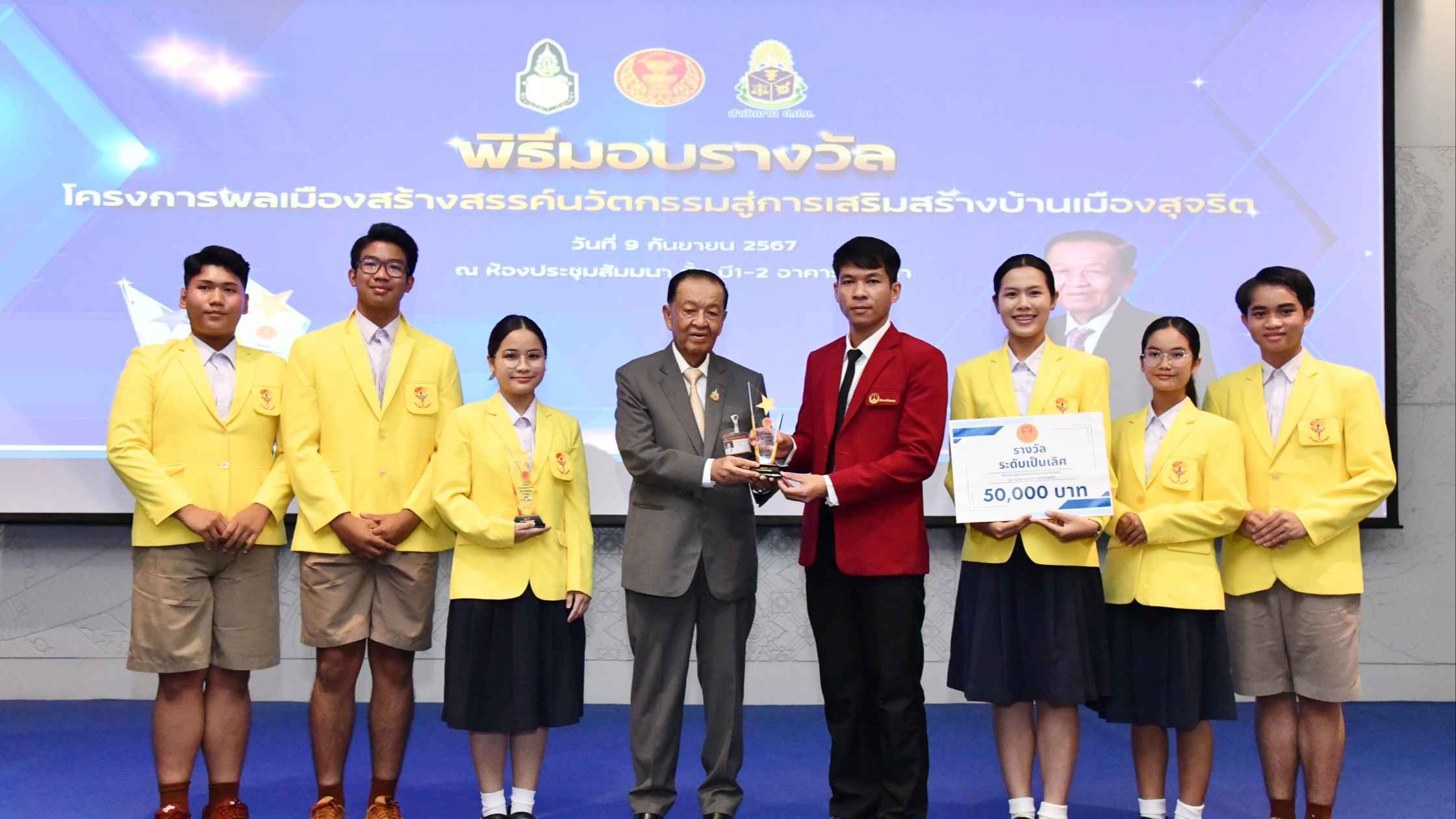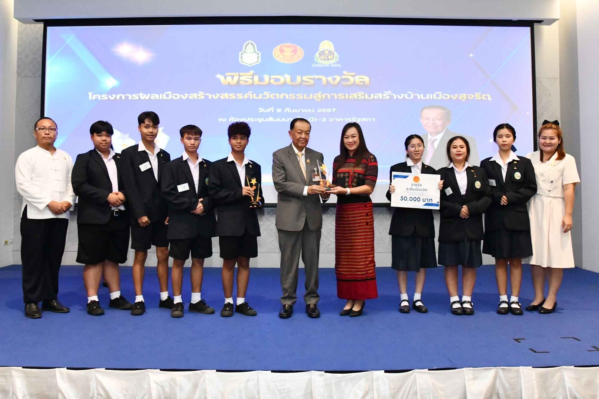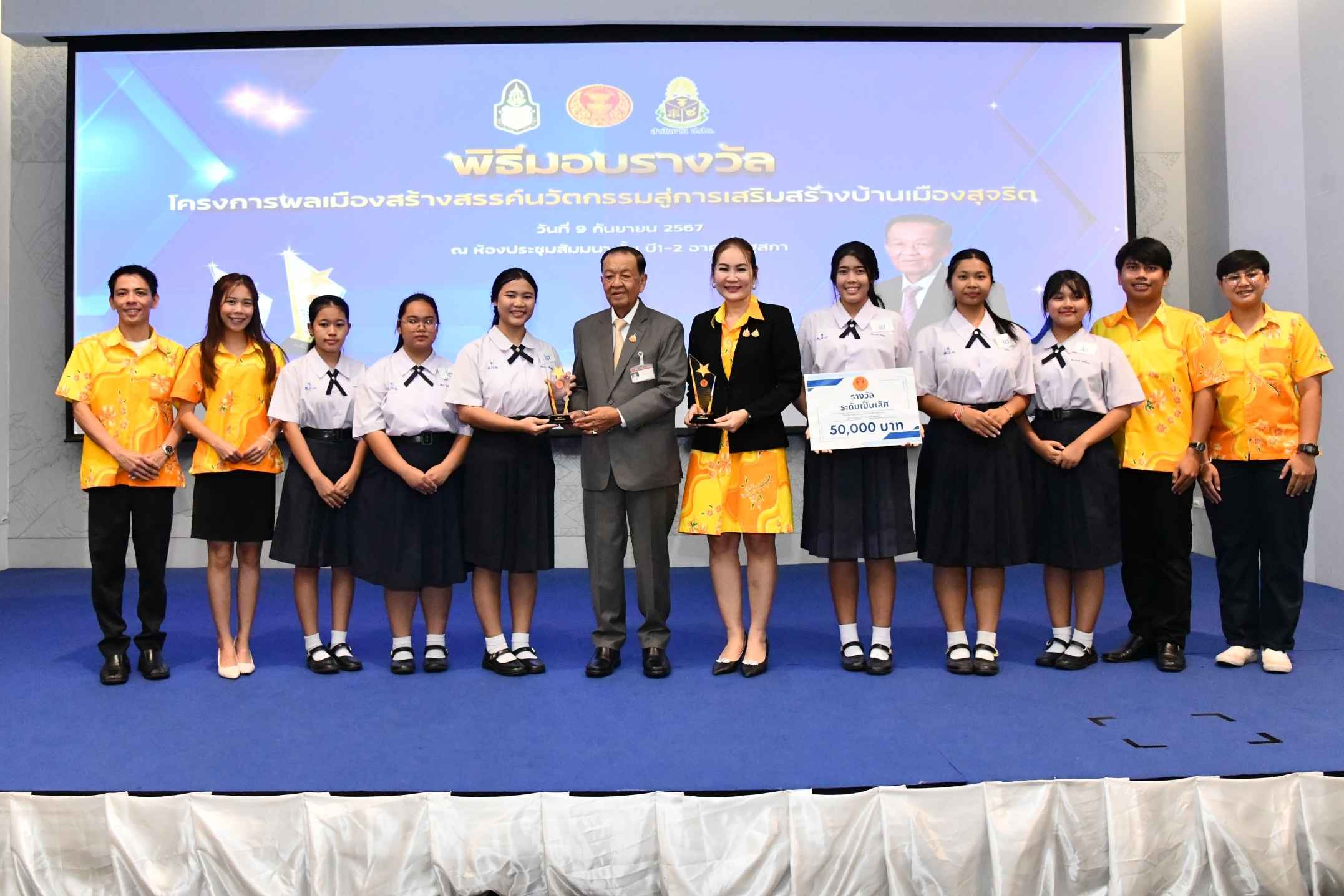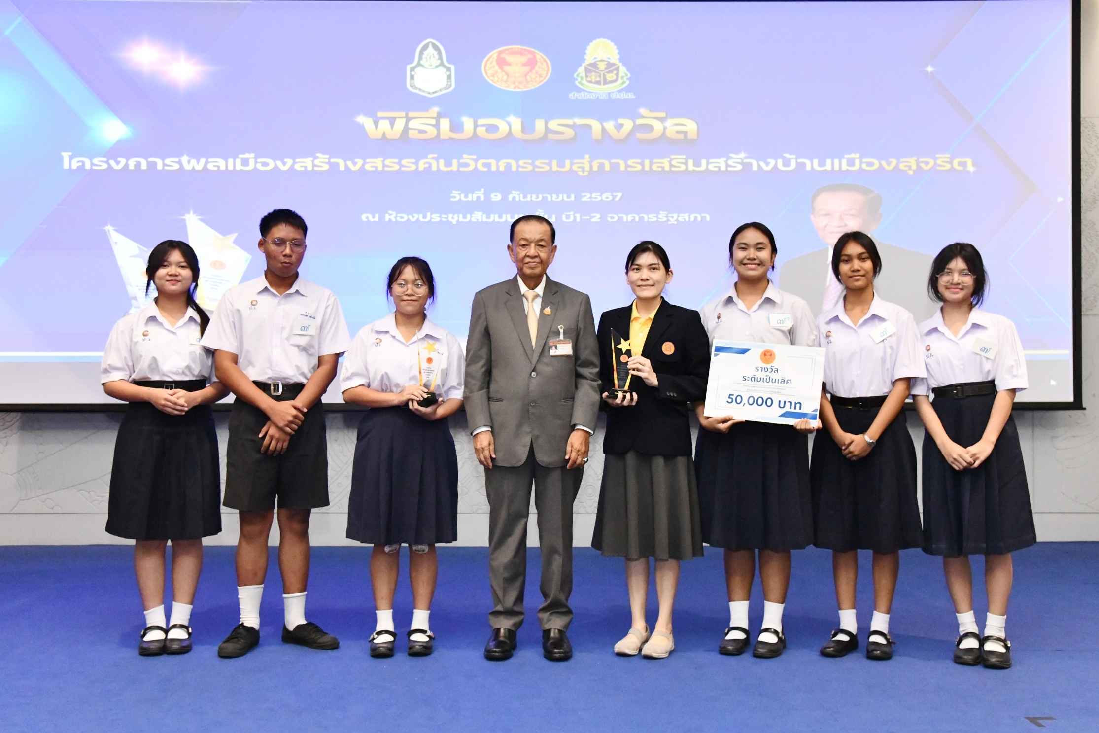 โดย ประธานรัฐสภา กล่าวให้โอวาทต่อเยาวชน ที่เข้าร่วมโครงการฯ ว่า ตนรู้สึกยินดีอย่างยิ่งที่มีโครงการนี้เกิดขึ้น และได้รับความร่วมมือจากทุกฝ่ายเป็นอย่างดี โดยเฉพาะสถานศึกษา เพราะการที่จะทำให้ประเทศมีการปกครองที่เป็นไปตามวิถีประชาธิปไตย สิ่งที่สำคัญคือ ต้องทำให้บ้านเมืองใสสะอาด ปกครองด้วยความซื่อสัตย์สุจริต แต่คนส่วนใหญ่มักไม่ประจักษ์เรื่องความสุจริต เพราะในโลกปัจจุบันมีการแข่งขันที่สูง แต่แท้จริงแล้วความซื่อสัตย์สุจริต เป็นเรื่องที่สำคัญอย่างยิ่ง บ้านเมืองจะเดินหน้าไปได้ ต้องประกอบด้วย การบริหารจัดการที่ซื่อสัตย์สุจริต นอกจากนี้ความซื่อสัตย์สุจริต ยังถือเป็น Soft Power อย่างหนึ่งของประเทศไทยด้วย เช่น การที่คนไทยมีความซื่อสัตย์สุจริต เมื่อมีนักท่องเที่ยวทำของหายและได้คืน ทำให้นักท่องเที่ยวอยากกลับมาท่องเที่ยวในไทยต่อ พร้อมย้ำว่าความซื่อสัตย์สุจริตนั้นไม่ได้เกิดขึ้นแค่คำพูด หรือบทลงโทษทางอาญา ทางวินัย หรือสิ่งที่เป็นเพียงมาตรการเท่านั้น แต่ในเบื้องต้นต้องเกิดจากการปฎิบัติตน ซึมซับ อบรม ในครอบครัว สถาบันศึกษา และชุมชน ที่ถือเป็นสิ่งสำคัญมาก จึงอยากให้ประเทศไทยฝึกฝนให้คนมีความซื่อสัตย์สุจริต ทั้งนี้ ขอชื่นชมที่รัฐสภาได้ร่วมมือกับหลายฝ่ายที่จัดโครงการนี้ขึ้น และอยากให้ขยายโครงการนี้เป็นวงกว้างมากขึ้นด้วย