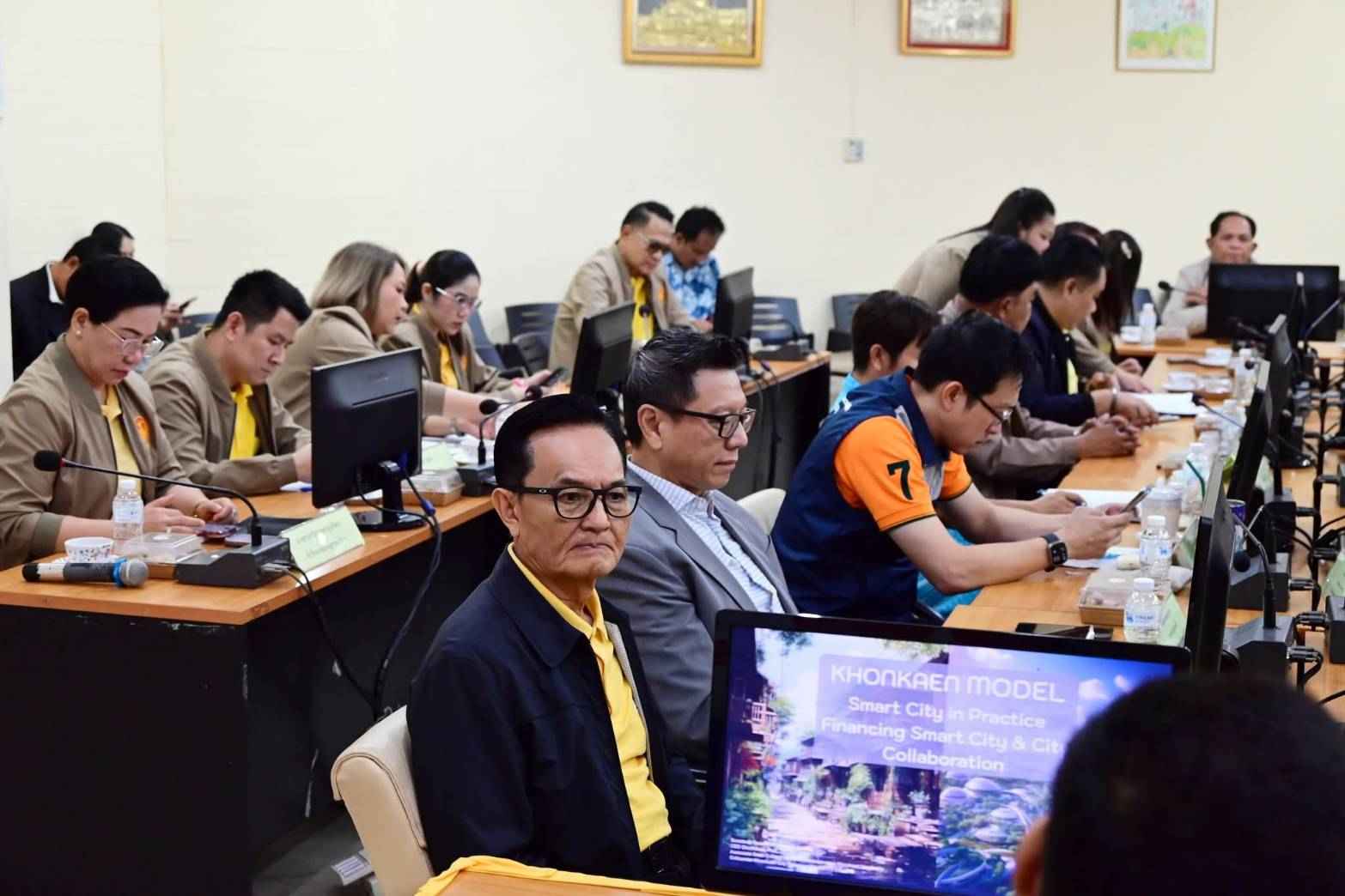 โดย คณะกรรมาธิการฯ ได้รับฟังบรรยายสรุปในประเด็นสำคัญเกี่ยวกับการบูรณาการความร่วมมือในการขับเคลื่อน "ขอนแก่นโมเดล" เป็นแนวคิดการพัฒนาเมืองที่ทำให้เกิดความร่วมมือขององค์กรปกครองส่วนท้องถิ่นในจังหวัดขอนแก่น 4 แห่ง ประกอบด้วย เทศบาลตำบลเมืองเก่า เทศบาลตำบลสำราญ และเทศบาลตำบลท่าพระ ร่วมกันจัดตั้งบริษัท ขอนแก่นทรานซิท ซิสเต็ม จำกัด (KKTS) เพื่อพัฒนาระบบขนส่งมวลชน รถไฟรางเบา Light Rail Transit (LRT) สายเหนือ-ใต้ ต้นแบบเมืองในภูมิภาค ระยะทางประมาณ 26 กิโลเมตร ซึ่งเป็นต้นแบบเมืองในภูมิภาค และเป็นหนึ่งในโครงการพัฒนาด้านการขนส่งอัจฉริยะ (Smart Mobility) ของจังหวัดขอนแก่น โดยบริษัท ขอนแก่นพัฒนาเมือง จำกัด (KKTT) ได้กำหนดวิสัยทัศน์ และแผนยุทธศาสตร์การพัฒนาเมืองพัฒนาเมือง วางโครงสร้างพื้นฐานของจังหวัด ประสานความร่วมมือระหว่างภาครัฐ ภาคเอกชน และสถาบันการศึกษา รวมทั้งศึกษาความเป็นไปได้ของโครงการรถไฟฟ้ารางเบา (LRT) และการพัฒนาพื้นที่รอบสถานี (TOD) เพื่อสร้างรายได้ให้กับองค์กรปกครองส่วนท้องถิ่น ทั้งนี้ คณะกรรมาธิการฯ ได้กล่าวชื่นชม “ขอนแก่นโมเดล” ว่าเป็นความสำเร็จในการจัดตั้งบริษัทของเทศบาล ซึ่งถือเป็นจังหวัดแรกของประเทศ เป็นการคิดนอกกรอบที่เปิดโอกาสให้องค์กรปกครองส่วนท้องถิ่นสามารถบริหารจัดการตนเองได้ โดยไม่ต้องรองบประมาณจากส่วนกลาง