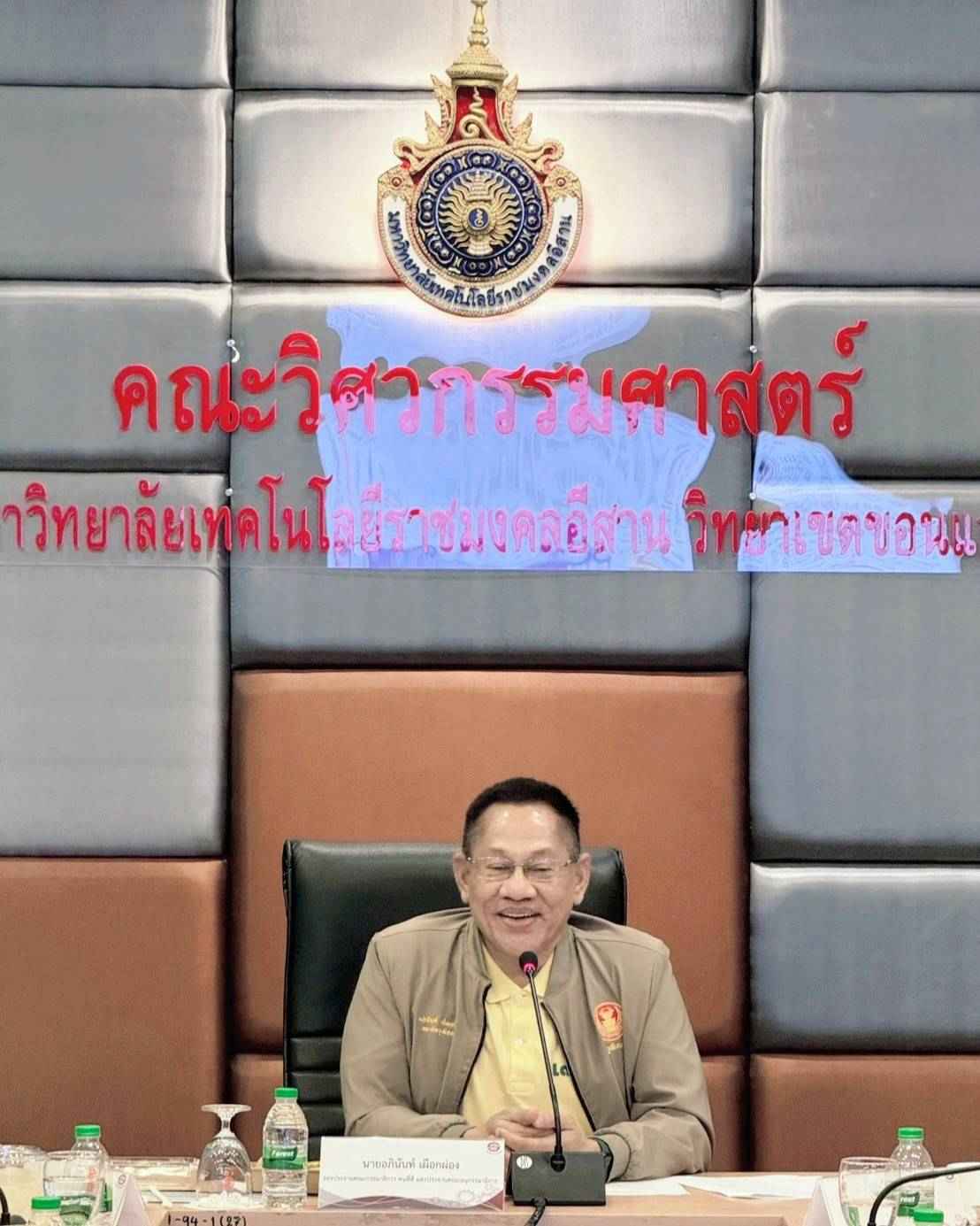 จากนั้น คณะกรรมาธิการ อนุกรรมาธิการ และคณะทำงาน เดินทางลงพื้นที่เพื่อประชุมและพบปะแลกเปลี่ยนความคิดเห็น ณ ห้องประชุมไพศาลห์ลีละเมียร ชั้น 2 อาคาร 50 ปี เทคนิค ไทย - เยอรมัน ขอนแก่น คณะมหาวิทยาลัยเทคโนโลยีราชมงคลอีสาน วิทยาเขตขอนแก่น โดยมี รองศาสตราจารย์ ดร.โฆษิต ศรีภูธร อธิการบดีมหาวิทยาลัยเทคโนโลยีราชมงคลอีสาน พร้อมด้วยคณะผู้บริหารและบุคลากรของมหาวิทยาลัยเทคโนโลยีราชมงคลอีสาน วิทยาเขตขอนแก่น ให้การต้อนรับ พร้อมทั้งบรรยายสรุปในประเด็นสำคัญเกี่ยวกับผลการดำเนินโครงการพัฒนาระบบขนส่งทางราง มหาวิทยาลัยเทคโนโลยีราชมงคลอีสาน วิทยาเขตขอนแก่น และแลกเปลี่ยนความคิดเห็นเกี่ยวกับการบูรณาการความร่วมมือในการขับเคลื่อน "ขอนแก่นโมเดล" รวมทั้งปัญหาอุปสรรคและข้อเสนอแนะแนวทางแก้ไข