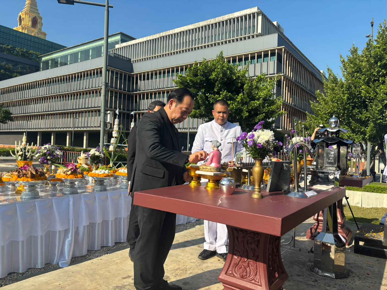นายศิโรจน์ แพทย์พันธุ์ เลขาธิการสภาผู้แทนราษฎร เป็นประธานในพิธีบวงสรวงอัญเชิญพระสยามเทวาธิราช พระเสื้อเมือง พระทรงเมือง พระภูมิชัยมงคล และศาลตา - ยาย ประทับ ณ ศาลเดิม ฝั่งสำนักงานเลขาธิการสภาผู้แทนราษฎร โดยมี คณะผู้บริหารสำนักงานเลขาธิการสภาผู้แทนราษฎร พร้อมด้วย ผู้บริหารสำนักงานเลขาธิการวุฒิสภา และบุคลากรทั้งสองสำนักงาน ร่วมพิธี