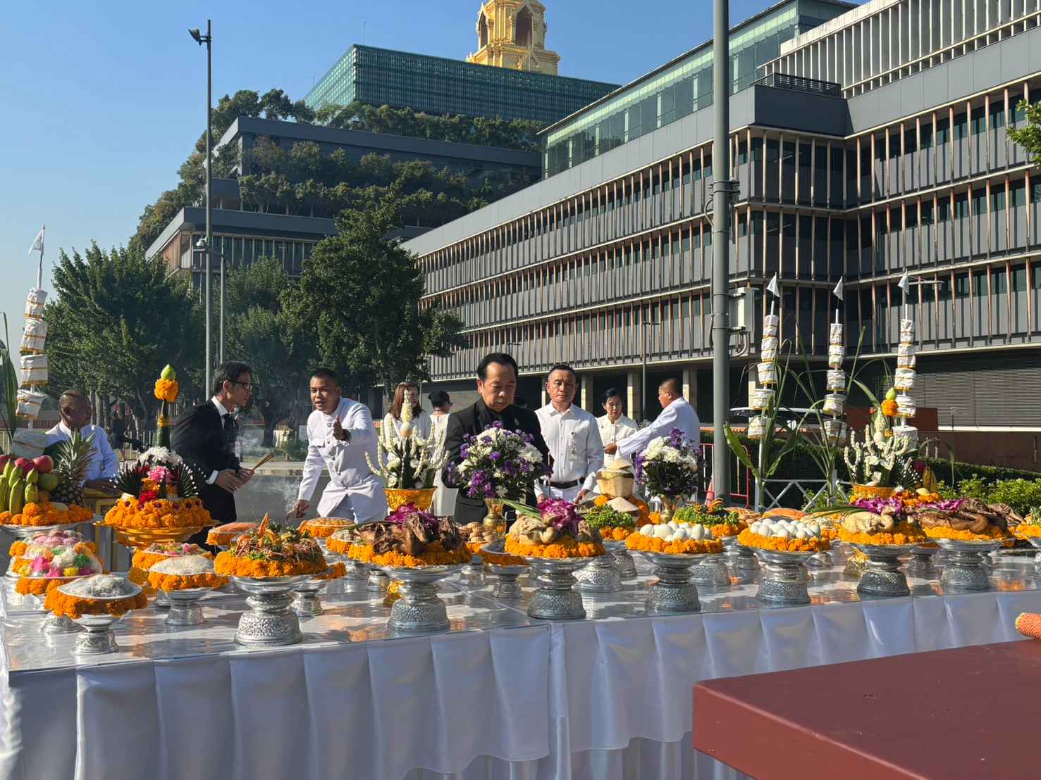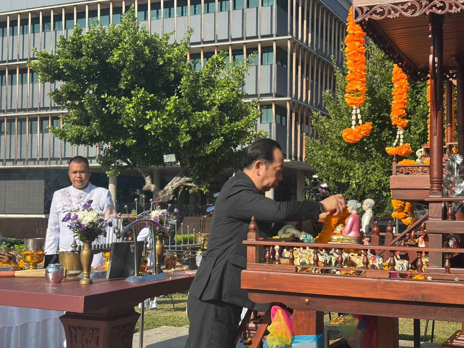 ทั้งนี้ เมื่อวันพุธที่ 12 พฤศจิกายน 2568 นายศิโรจน์ แพทย์พันธุ์ เลขาธิการสภาผู้แทนราษฎร ได้ทำพิธีบอกกล่าวในการดำเนินการปรับปรุงบูรณะศาลพระสยามเทวาธิราชฯ และศาลตา - ยาย ที่ปกปักษ์รักษา ณ สถานที่แห่งนี้ เพื่อที่จะทำการบูรณะ ปรับปรุง ทำความสะอาดศาลให้มีความสวยงาม จึงขออัญเชิญไปประทับยังห้องพระ ชั้น 3 อาคารรัฐสภา เป็นการชั่วคราว โดยมอบหมายให้สำนักอาคารสถานที่ของรัฐสภาดำเนินการบูรณะและปรับปรุงซ่อมแซม โดยเริ่มตั้งแต่วันพุธที่ 12 พฤศจิกายน 2568 บัดนี้ การบูรณะและปรับปรุงซ่อมแชมได้เสร็จสิ้นแล้ว สำนักอาคารสถานที่ของรัฐสภา ได้กำหนดจัดพิธีอัญเชิญและพิธีบวงสรวงพระสยามเทวาธิราชฯ และศาลตา - ยาย กลับไปประดิษฐาน ณ สถานที่เดิม