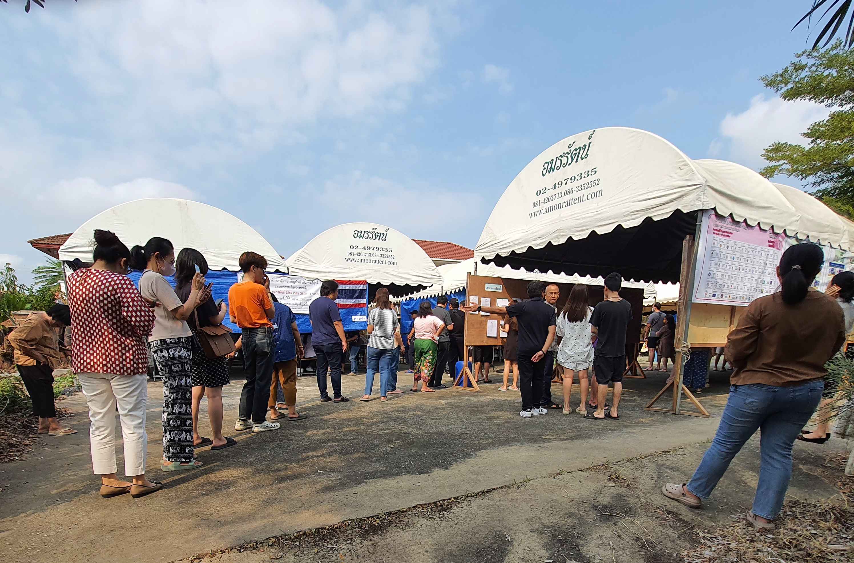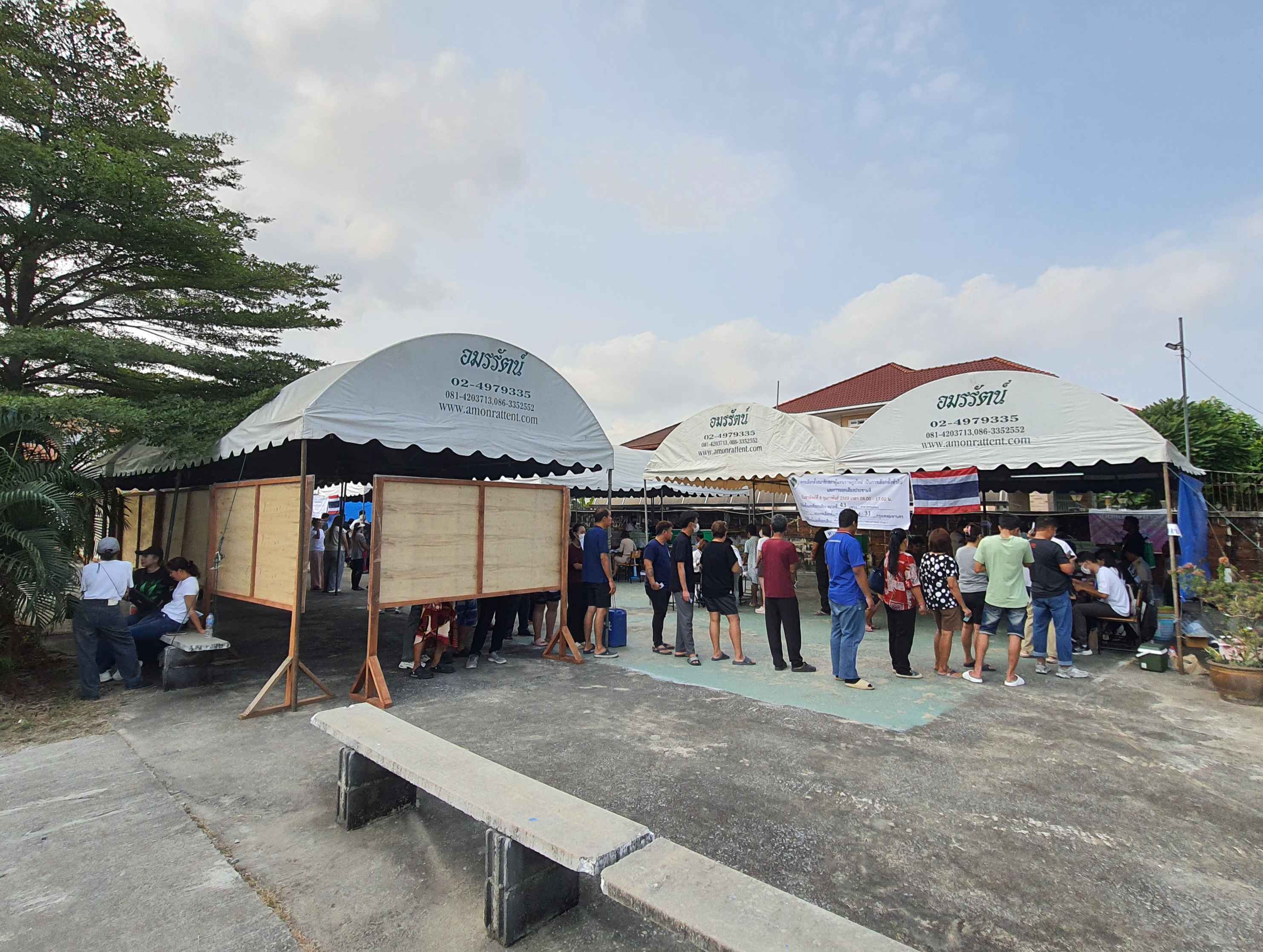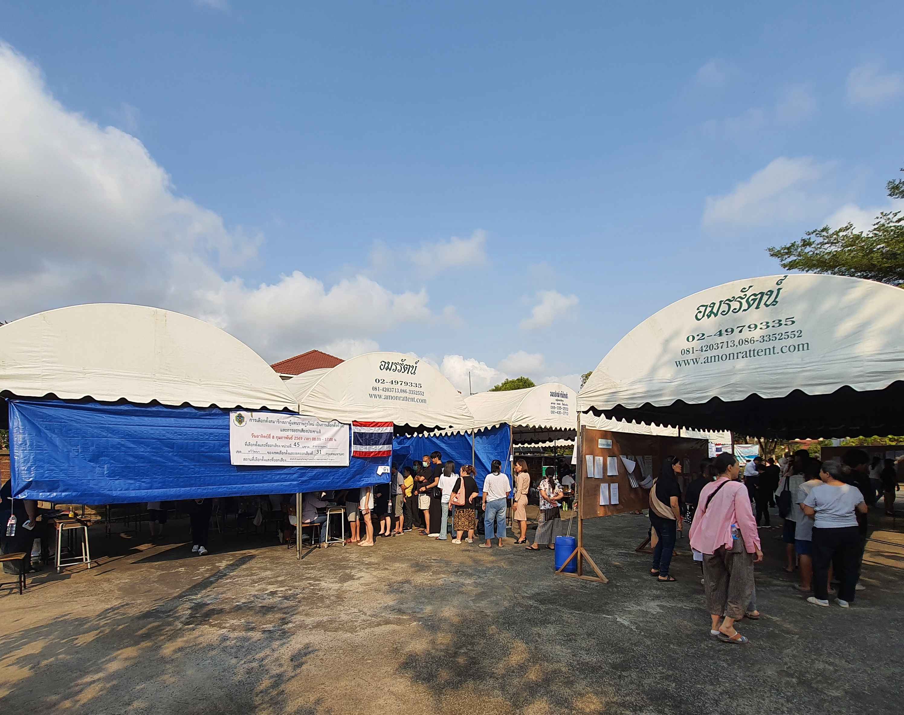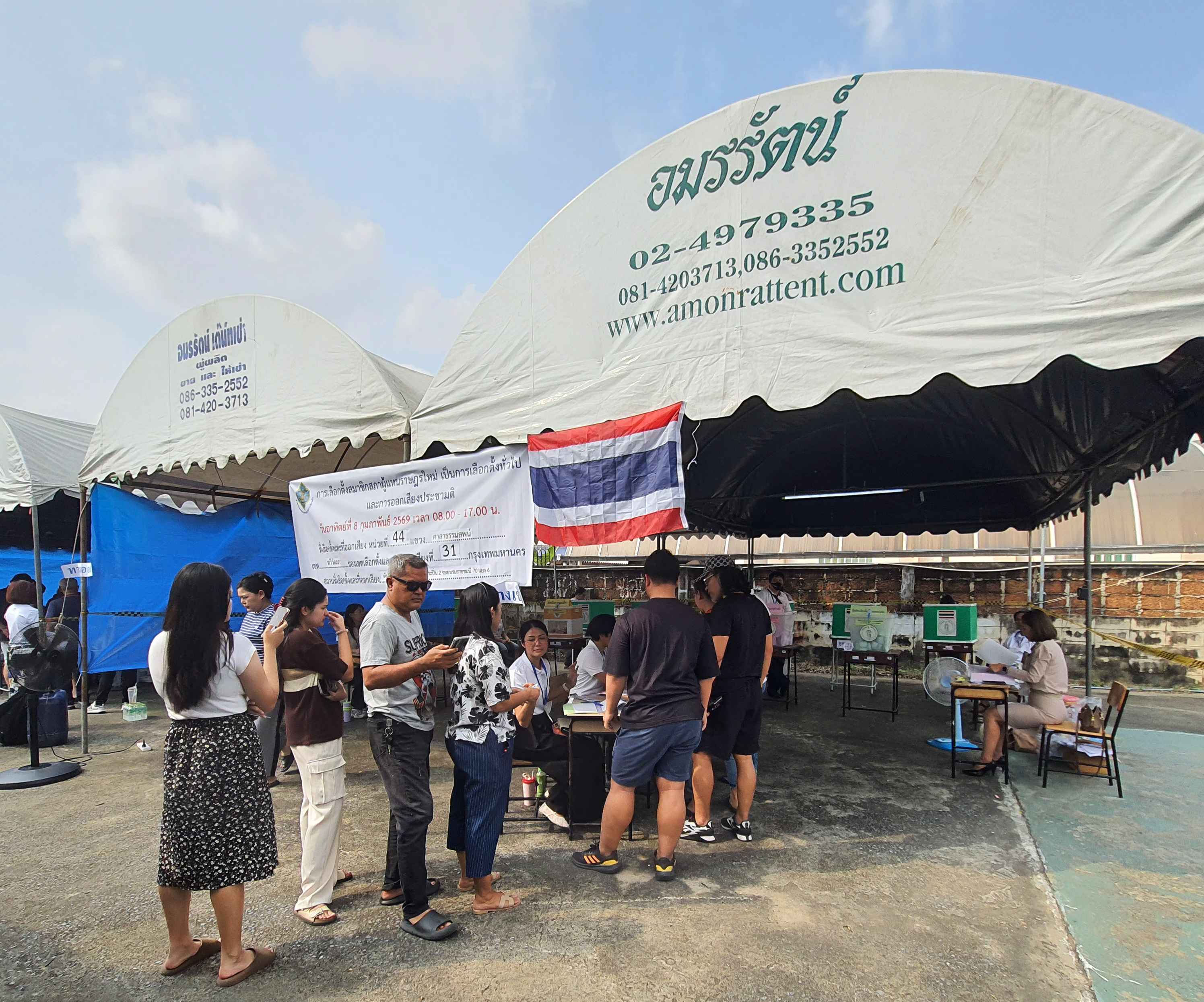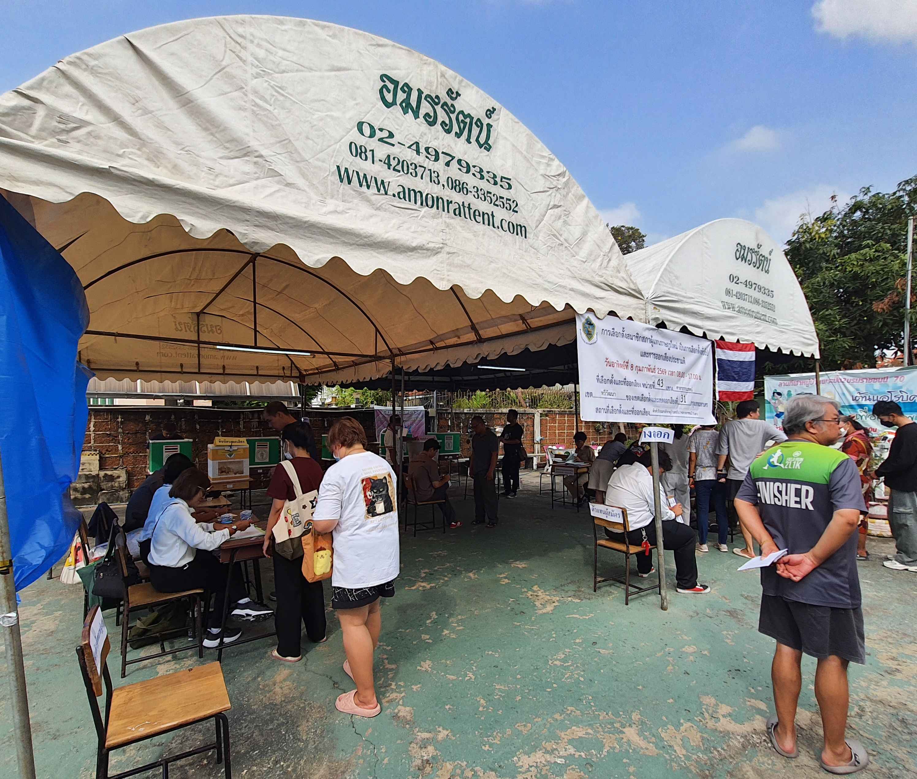 ทีมข่าววิทยุรัฐสภาลงพื้นที่ติดตามบรรยากาศการเลือกตั้งสมาชิกสภาผู้แทนราษฎร (สส.) และการออกเสียงประชามติต่อการจัดทำรัฐธรรมนูญฉบับใหม่ ในวันช่วงเช้านี้ (8 ก.พ.69) ซึ่งเริ่มเปิดหีบเลือกตั้งมาตั้งแต่เมื่อเวลา 08.00 น. และจะเปิดไปจนถึงเวลา 17.00 น. ของวันนี้ ณ เต็นท์บริเวณลานกีฬาหมู่บ้านพระปิ่น 2 ซอยบรมราชชนนี 70 แยก 6 ซึ่งเป็นเขตเลือกตั้งที่ 31 ของกรุงเทพมหานคร ครอบคลุมแขวงศาลาธรรมสพน์ เขตทวีวัฒนา กรุงเทพมหานคร (กทม.) พบว่า พื้นที่นี้มีหน่วยเลือกตั้ง จำนวน 3 หน่วยเลือกตั้ง ประกอบด้วย หน่วยเลือกตั้งที่ 43 ถึง 45 โดยในหน่วยเลือกตั้งที่ 43 มีผู้มีสิทธิเลือกตั้งและออกเสียงประชามติจำนวน 872 คน แบ่งเป็นชาย 386 คนและหญิง 486 คน ส่วนหน่วยเลือกตั้งที่ 44 มีผู้มีสิทธิเลือกตั้งและออกเสียงประชามติจำนวน 844 คน แยกเป็นชาย 398 คน และหญิง 446 คน ด้านหน่วยเลือกตั้งที่ 45 มีผู้มีสิทธิเลือกตั้งและออกเสียงประชามติจำนวน 897 คน แบ่งเป็นชาย 365 คนและหญิง 532 คน
